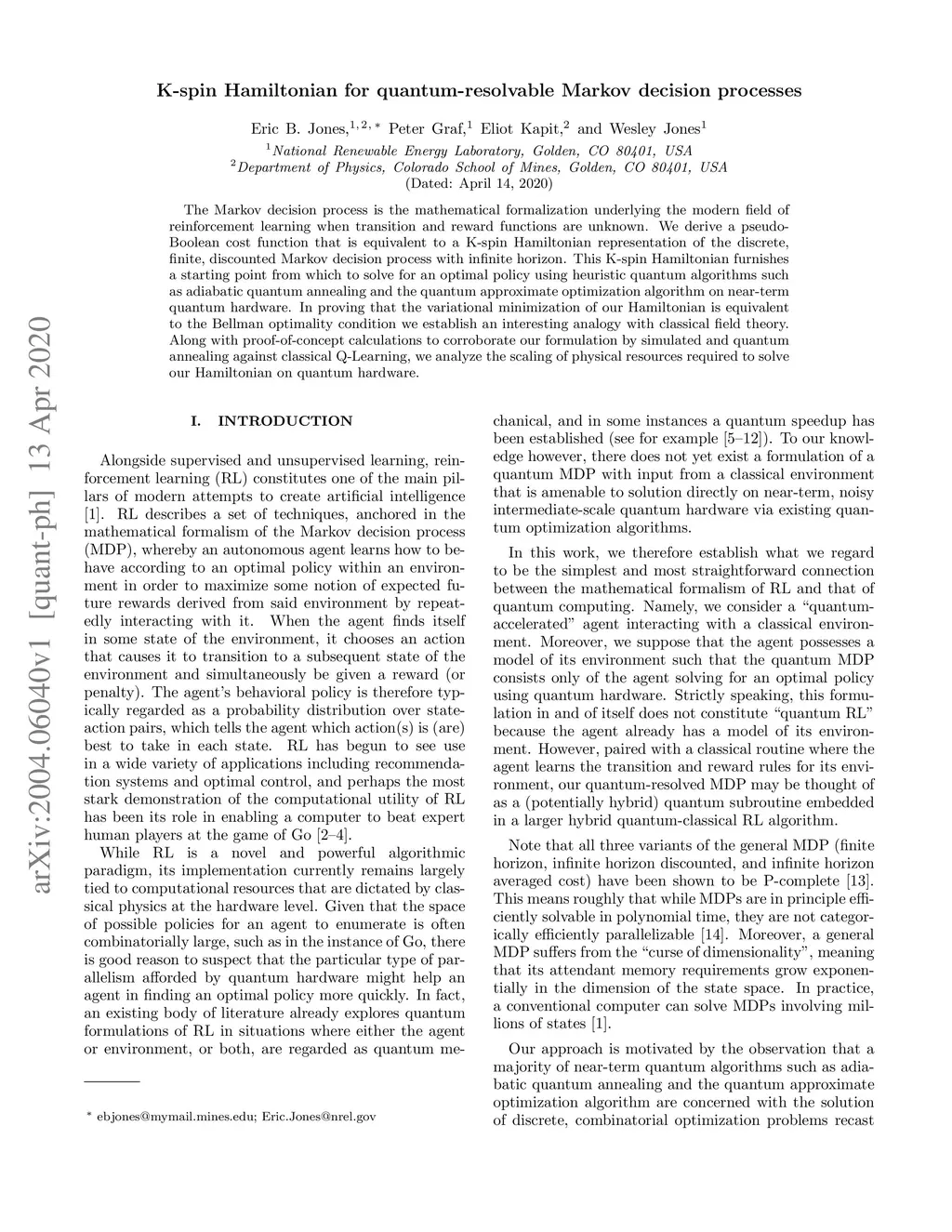K-spin Hamiltonian for quantum-resolvable Markov decision processes