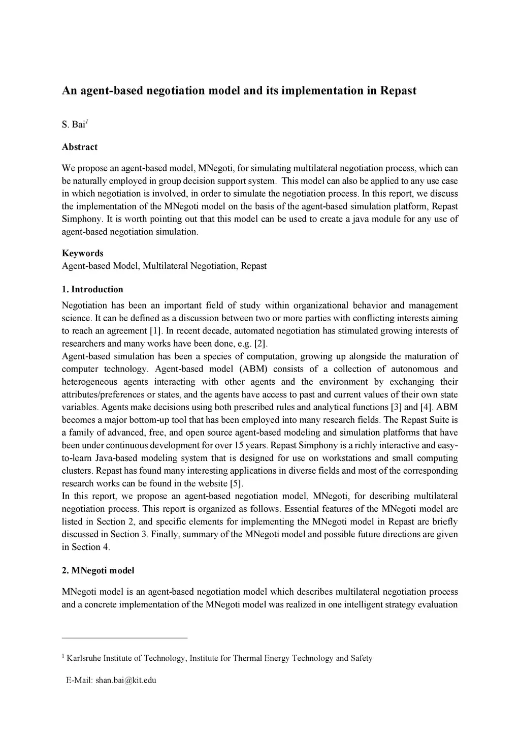 We propose an agent-based model, MNegoti, for simulating multilateral negotiation process, which can be naturally employed in group decision support system. This model can also be applied to any use case in which negotiation is involved, in order to simulate the negotiation process. In this report, we discuss the implementation of the MNegoti model on the basis of the agent-based simulation platform, Repast Simphony. It is worth pointing out that this model can be used to create a java module for any use of agent-based negotiation simulation.