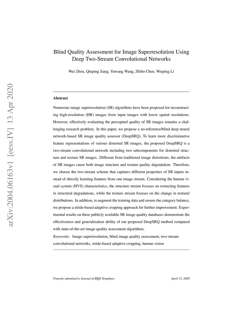 Blind Quality Assessment for Image Superresolution Using Deep Two-Stream