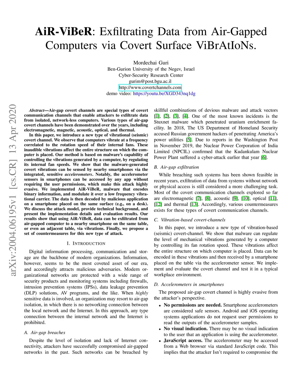 AiR-ViBeR: Exfiltrating Data from Air-Gapped Computers via Covert