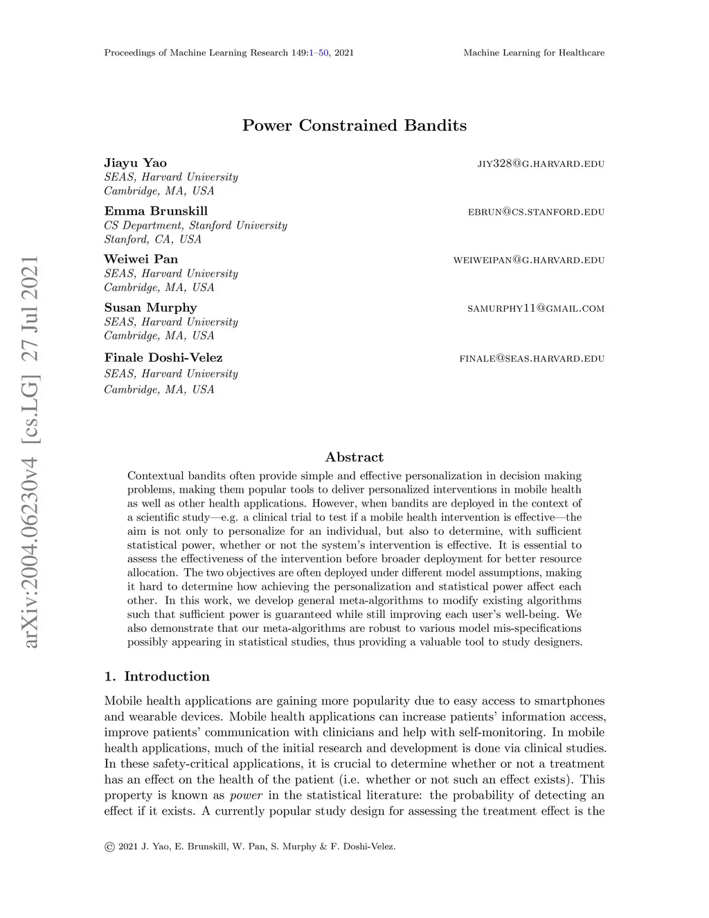 Power-Constrained Bandits