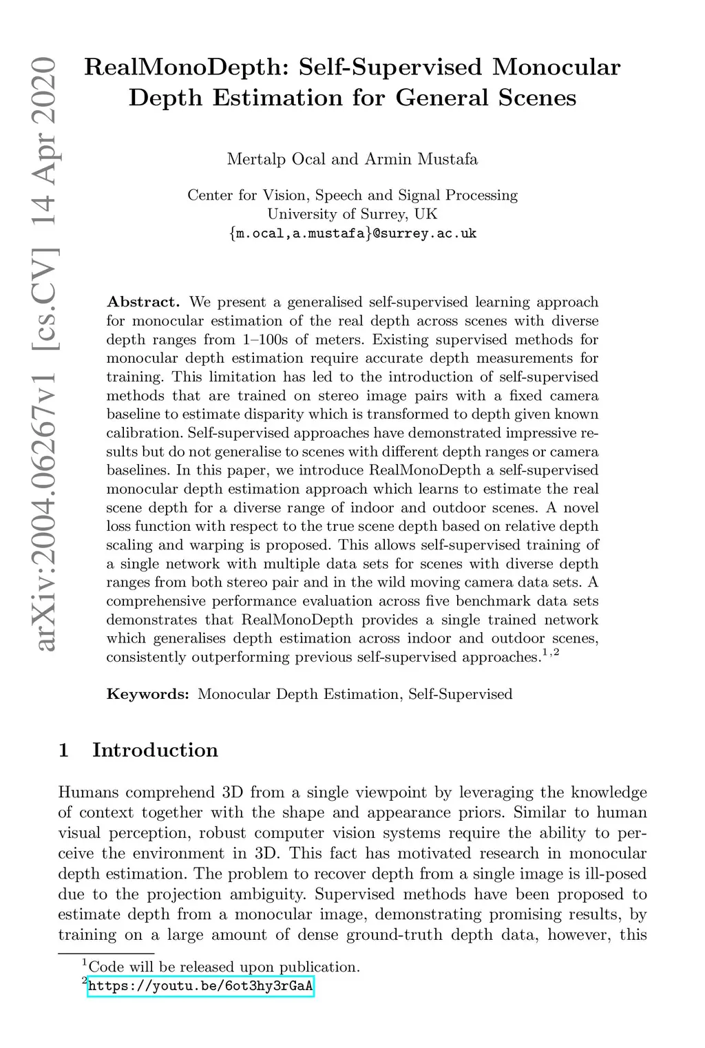 RealMonoDepth: Self-Supervised Monocular Depth Estimation for General