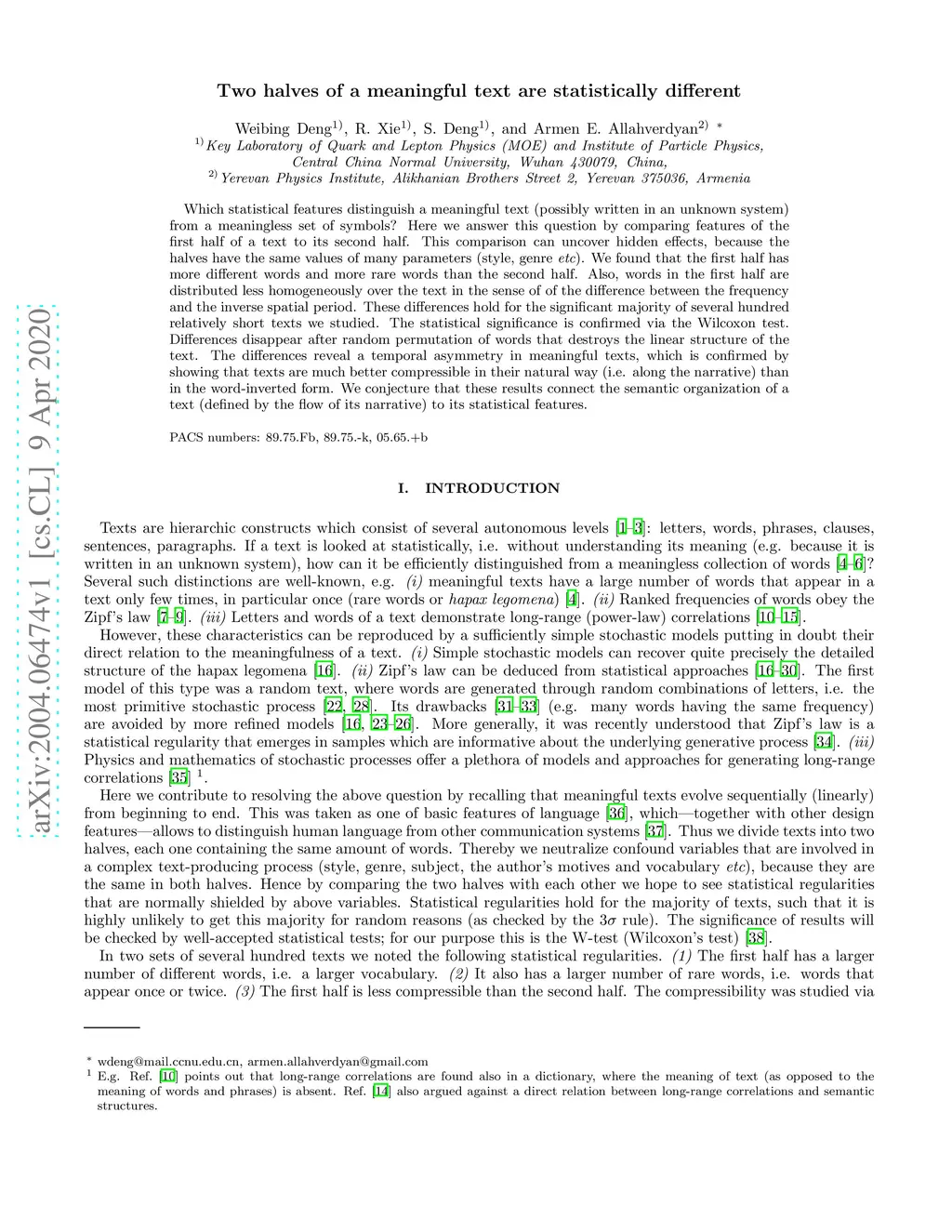 Two halves of a meaningful text are statistically different