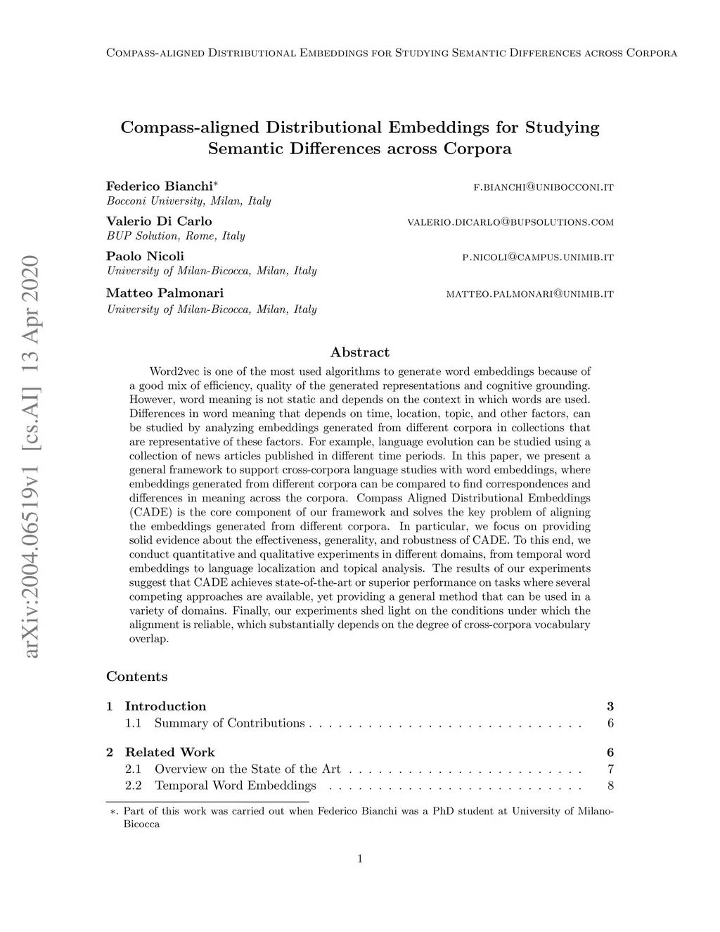Compass-aligned Distributional Embeddings for Studying Semantic