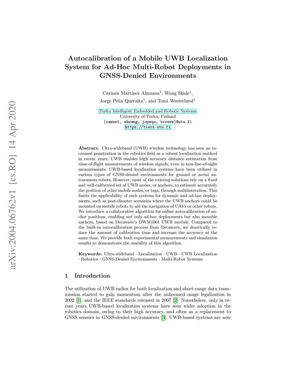 Autocalibration of a Mobile UWB Localization System for Ad-Hoc