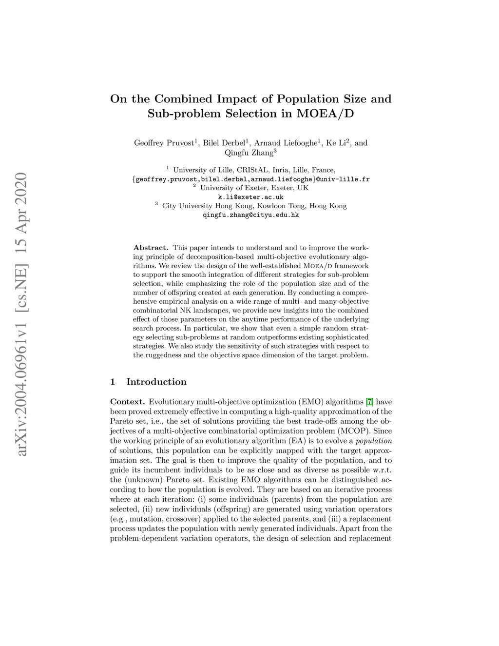 On the Combined Impact of Population Size and Sub-problem Selection in