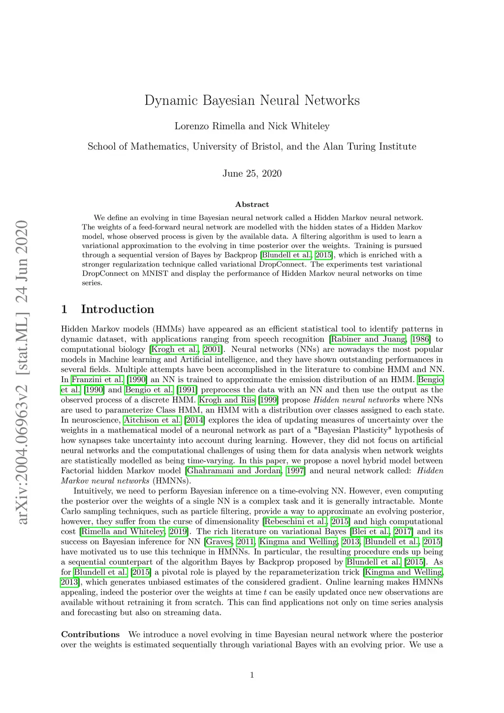Hidden Markov Neural Networks