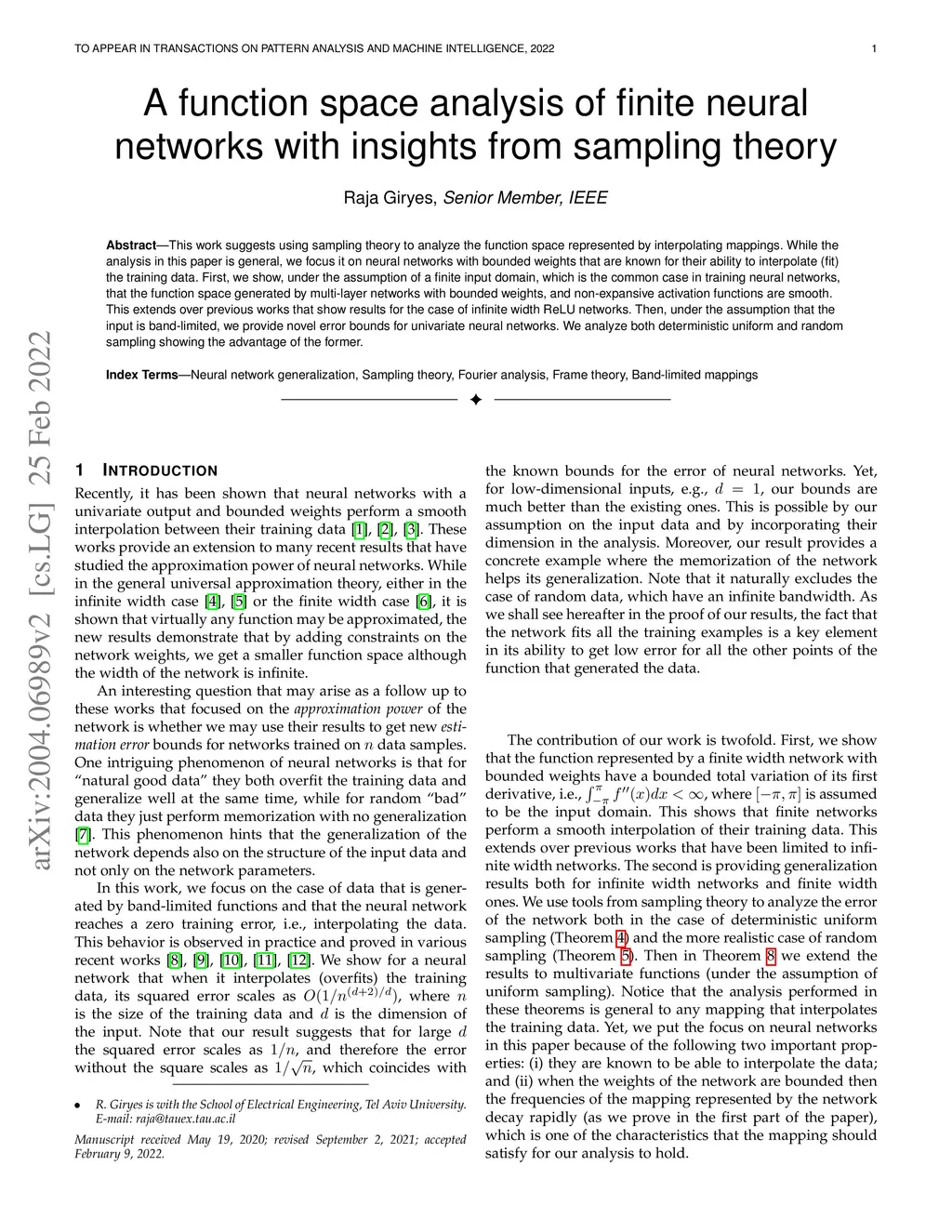 This work suggests using sampling theory to analyze the function space represented by neural networks. First, it shows, under the assumption of a finite input domain, which is the common case in training neural networks, that the function space generated by multi-layer networks with non-expansive activation functions is smooth. This extends over previous works that show results for the case of infinite width ReLU networks. Then, under the assumption that the input is band-limited, we provide novel error bounds for univariate neural networks. We analyze both deterministic uniform and random sampling showing the advantage of the former.