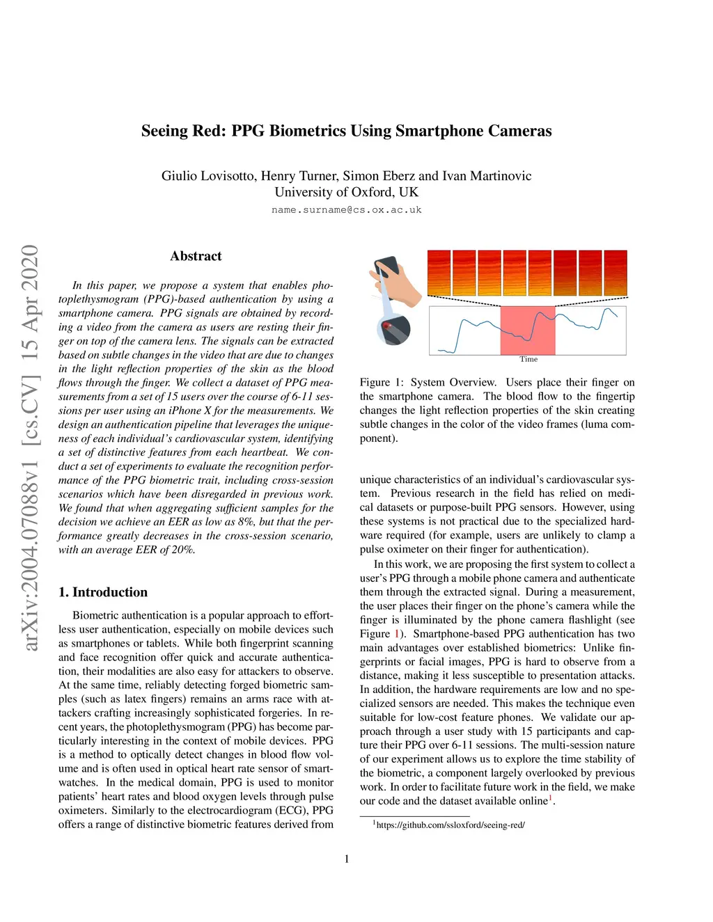 Seeing Red: PPG Biometrics Using Smartphone Cameras