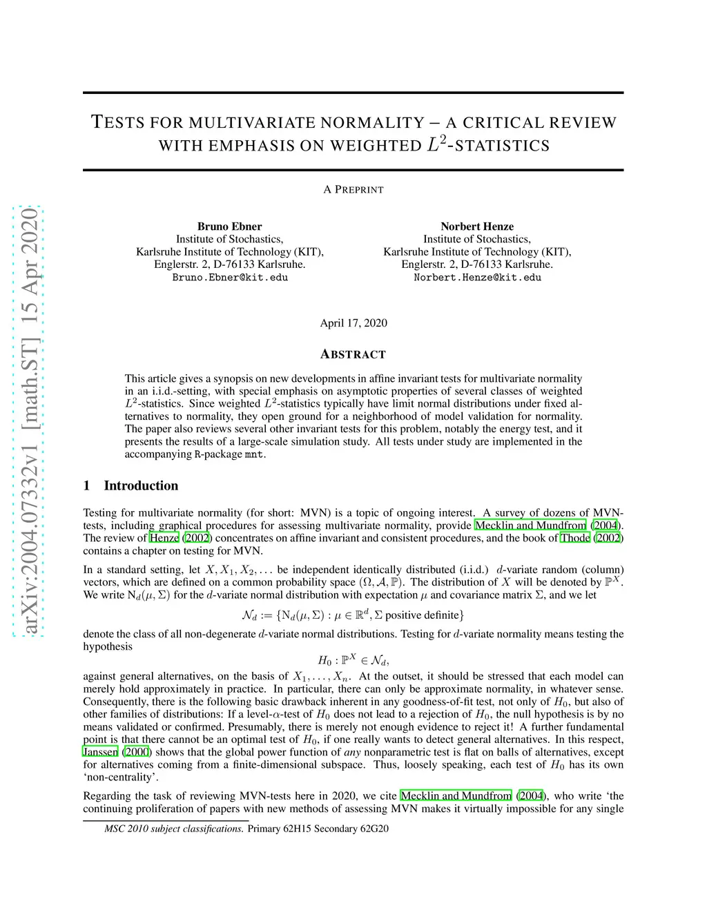 This article gives a synopsis on new developments in affine invariant tests for multivariate normality in an i.i.d.-setting, with special emphasis on asymptotic properties of several classes of weighted -statistics. Since weighted -statistics typically have limit normal distributions under fixed alternatives to normality, they open ground for a neighborhood of model validation for normality. The paper also reviews several other invariant tests for this problem, notably the energy test, and it presents the results of a large-scale simulation study. All tests under study are implemented in the accompanying R-package mnt.