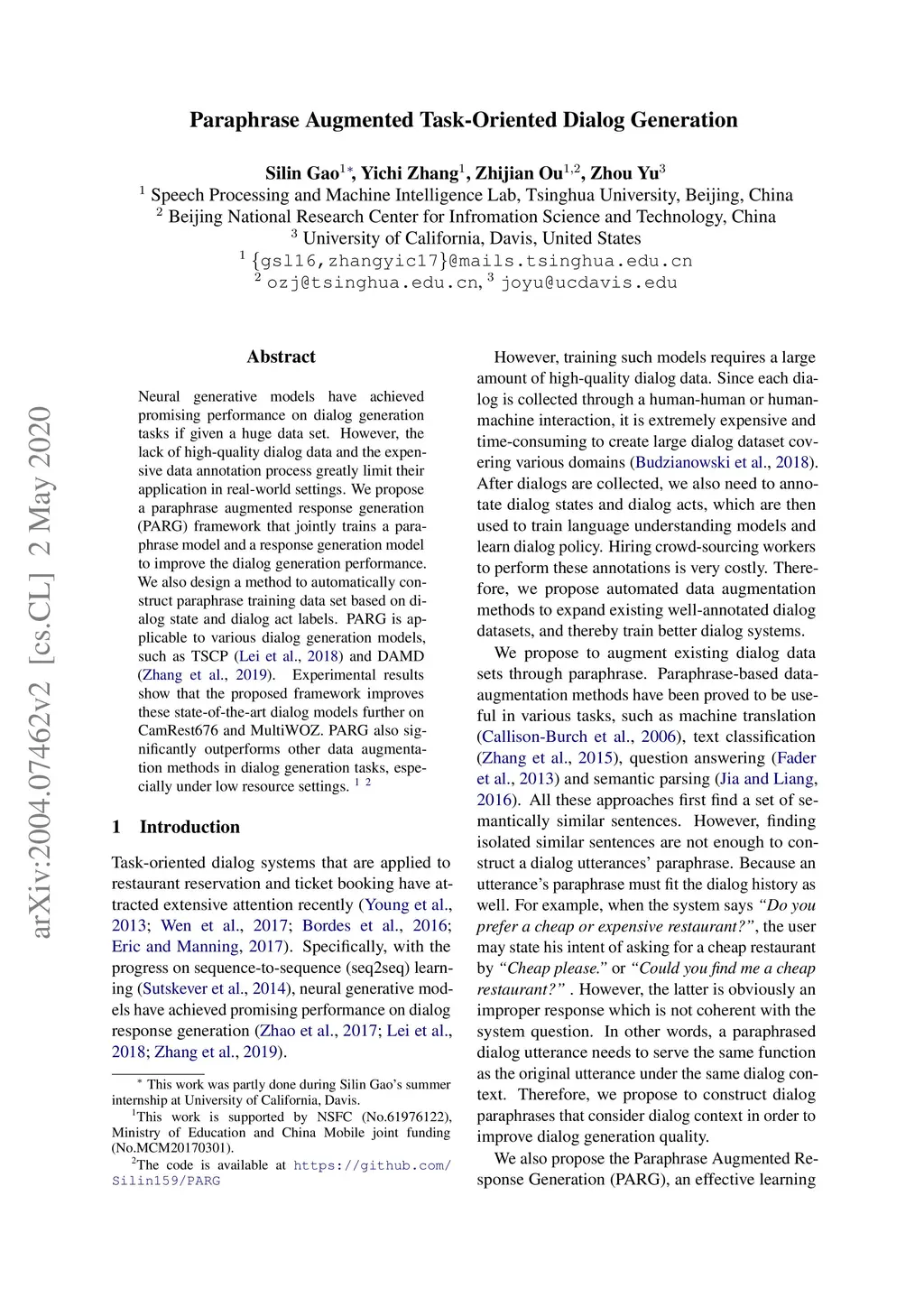 Paraphrase Augmented Task-Oriented Dialog Generation