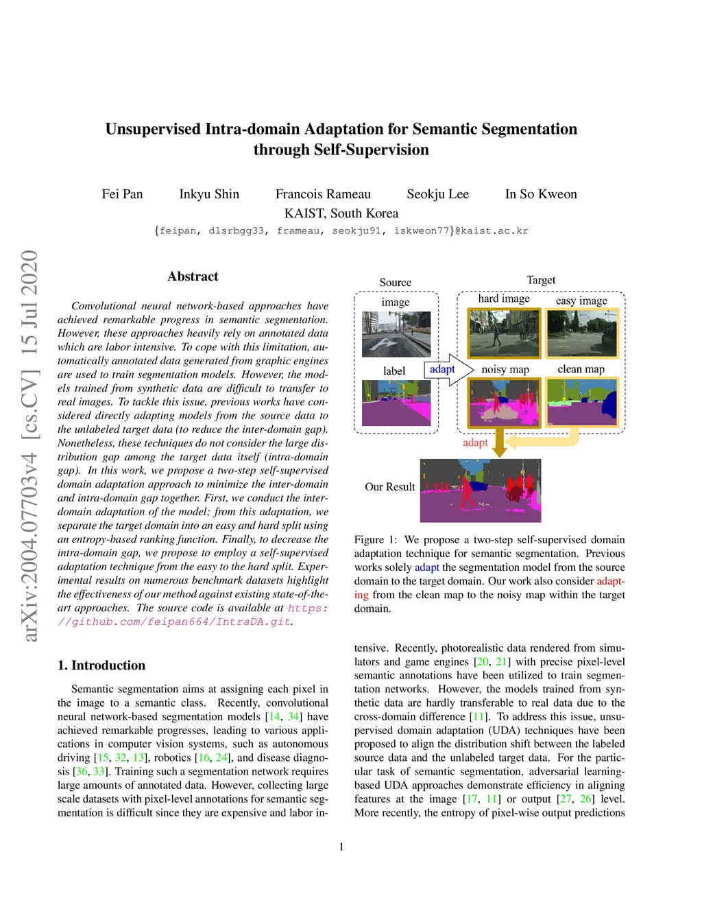 Unsupervised Intra-domain Adaptation for Semantic Segmentation through