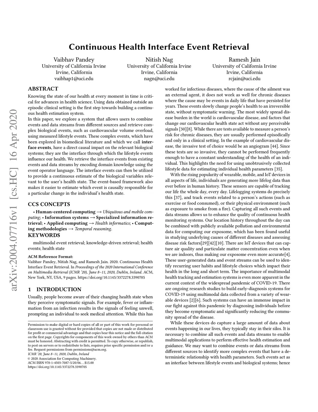 Continuous Health Interface Event Retrieval