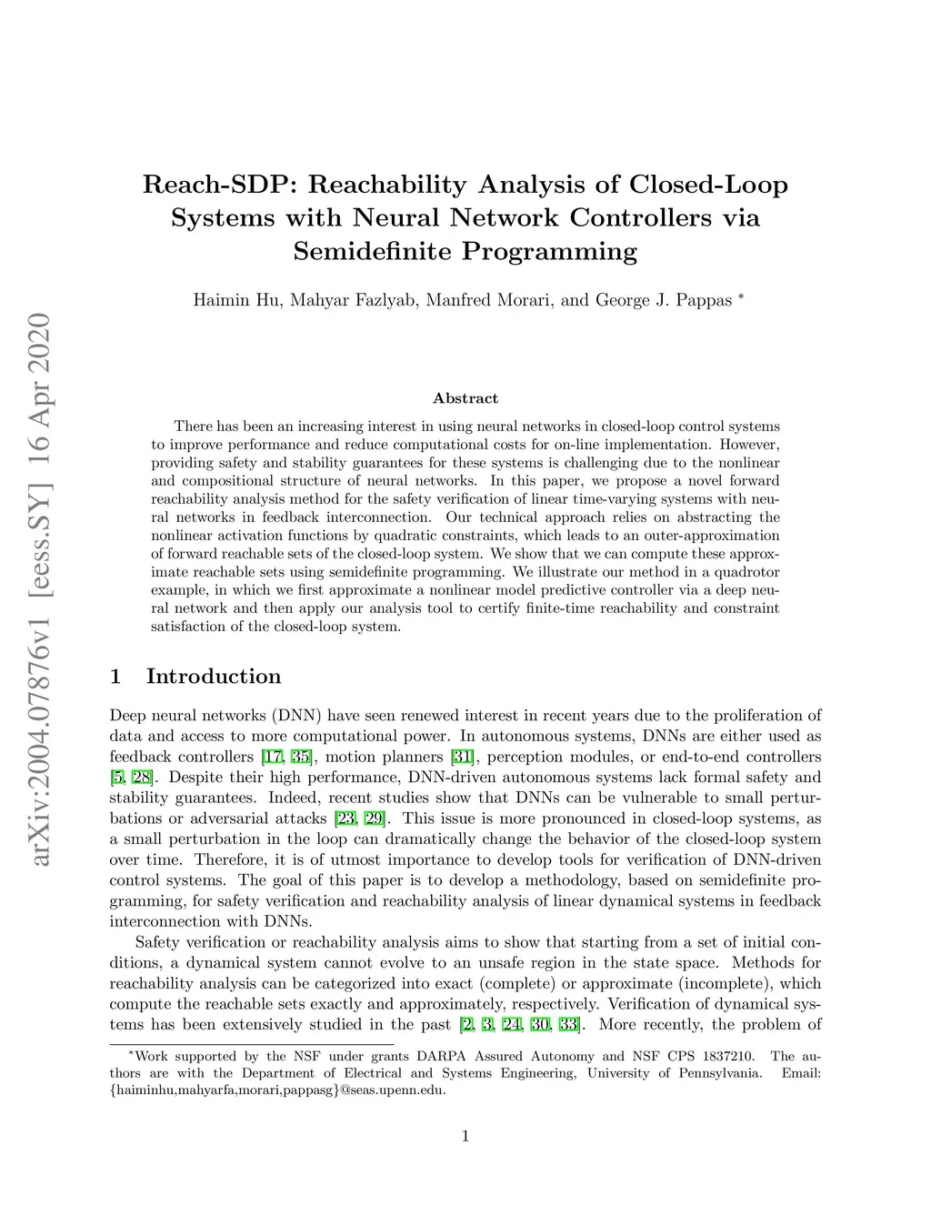 Reach-SDP: Reachability Analysis of Closed-Loop Systems with Neural