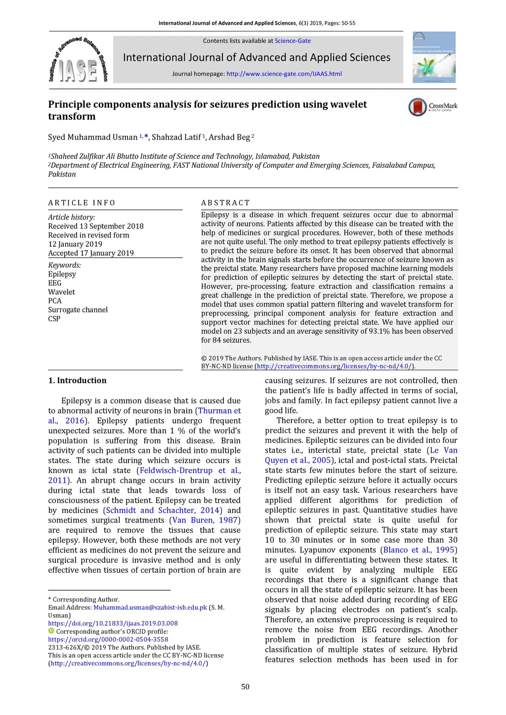 Epilepsy is a disease in which frequent seizures occur due to abnormal activity of neurons. Patients affected by this disease can be treated with the help of medicines or surgical procedures. However, both of these methods are not quite useful. The only method to treat epilepsy patients effectively is to predict the seizure before its onset. It has been observed that abnormal activity in the brain signals starts before the occurrence of seizure known as the preictal state. Many researchers have proposed machine learning models for prediction of epileptic seizures by detecting the start of preictal state. However, pre-processing, feature extraction and classification remains a great challenge in the prediction of preictal state. Therefore, we propose a model that uses common spatial pattern filtering and wavelet transform for preprocessing, principal component analysis for feature extraction and support vector machines for detecting preictal state. We have applied our model on 23 subjects and an average sensitivity of 93.1% has been observed for 84 seizures.