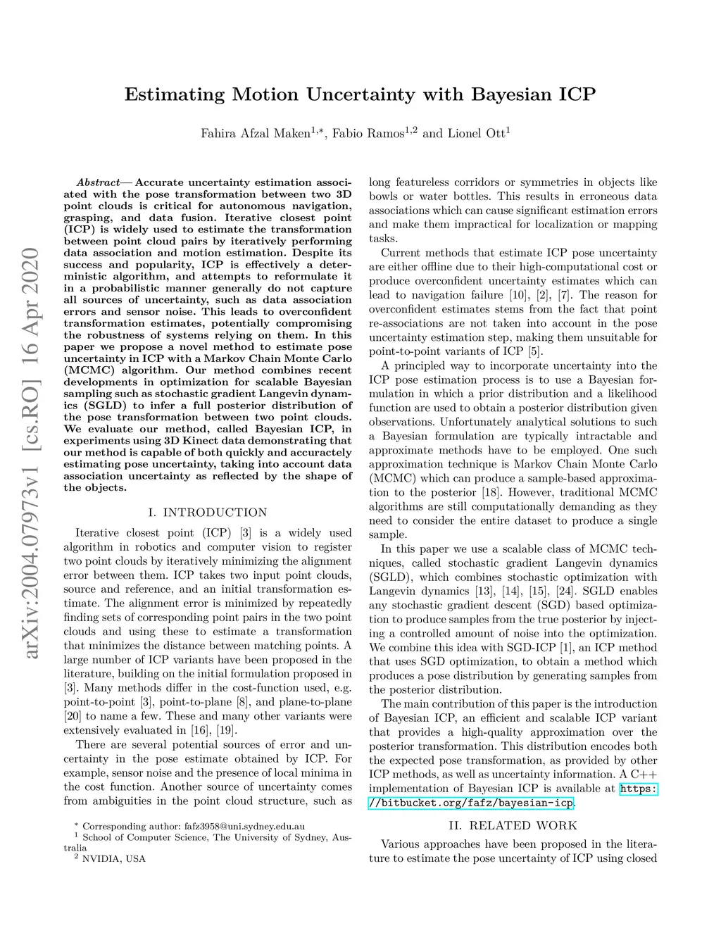 Estimating Motion Uncertainty with Bayesian ICP