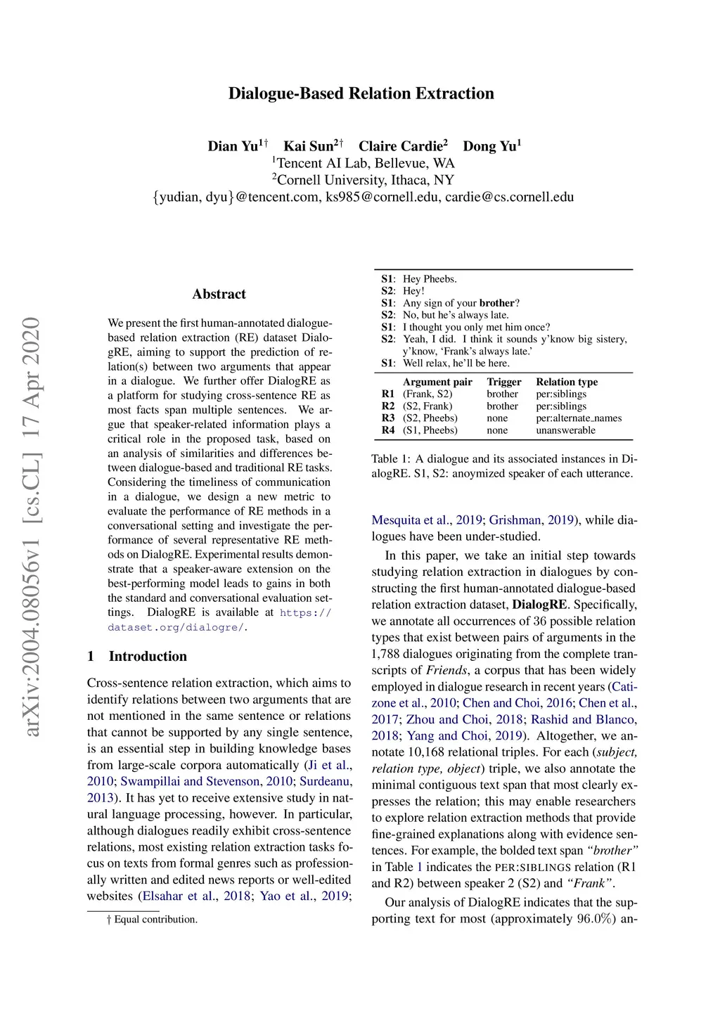 Dialogue-Based Relation Extraction