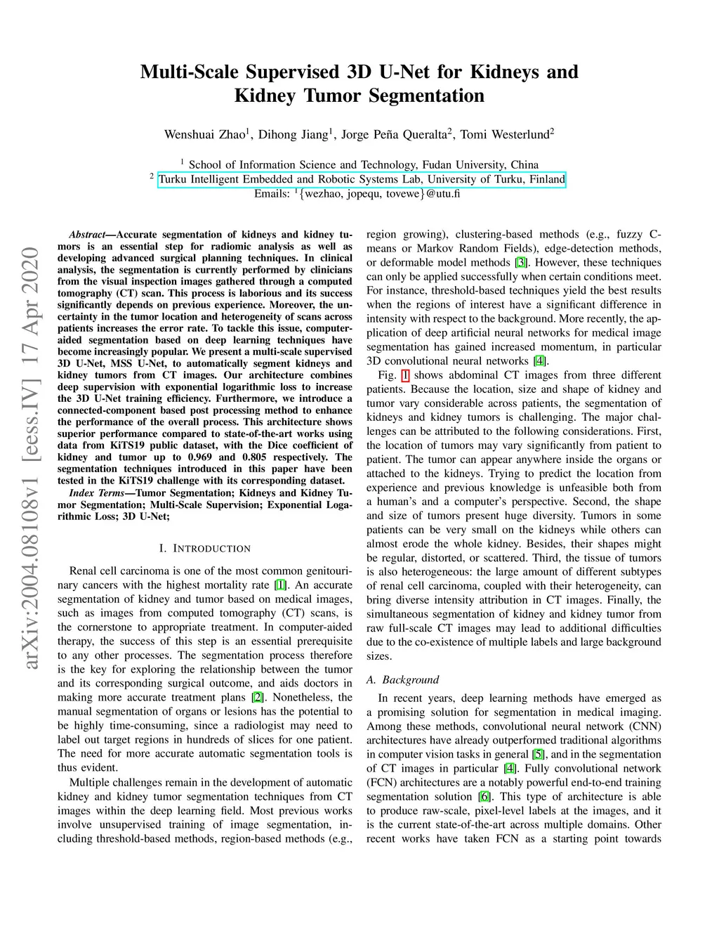 Multi-Scale Supervised 3D U-Net for Kidneys and Kidney Tumor