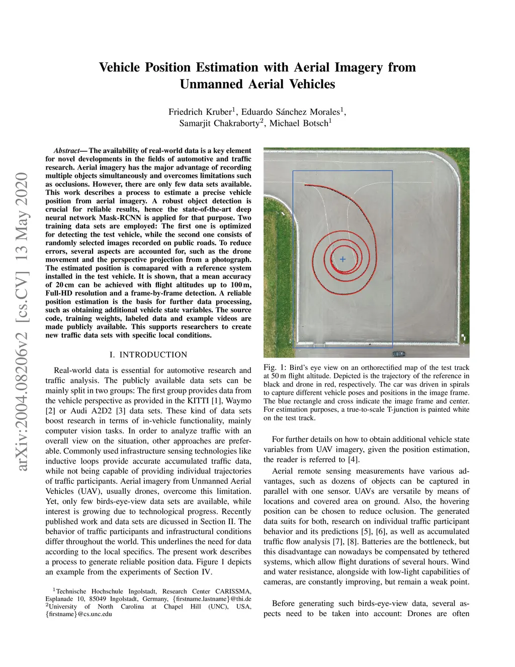 Vehicle Position Estimation with Aerial Imagery from Unmanned Aerial