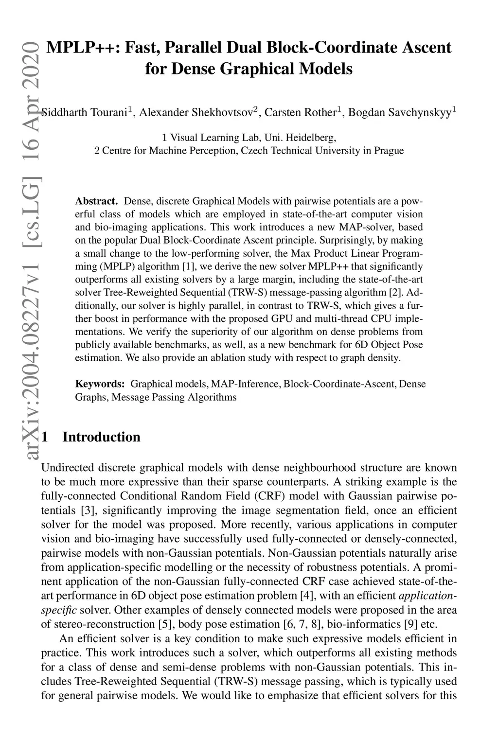 Dense, discrete Graphical Models with pairwise potentials are a powerful class of models which are employed in state-of-the-art computer vision and bio-imaging applications. This work introduces a new MAP-solver, based on the popular Dual Block-Coordinate Ascent principle. Surprisingly, by making a small change to the low-performing solver, the Max Product Linear Programming (MPLP) algorithm, we derive the new solver MPLP++ that significantly outperforms all existing solvers by a large margin, including the state-of-the-art solver Tree-Reweighted Sequential (TRWS) message-passing algorithm. Additionally, our solver is highly parallel, in contrast to TRWS, which gives a further boost in performance with the proposed GPU and multi-thread CPU implementations. We verify the superiority of our algorithm on dense problems from publicly available benchmarks, as well, as a new benchmark for 6D Object Pose estimation. We also provide an ablation study with respect to graph density.
