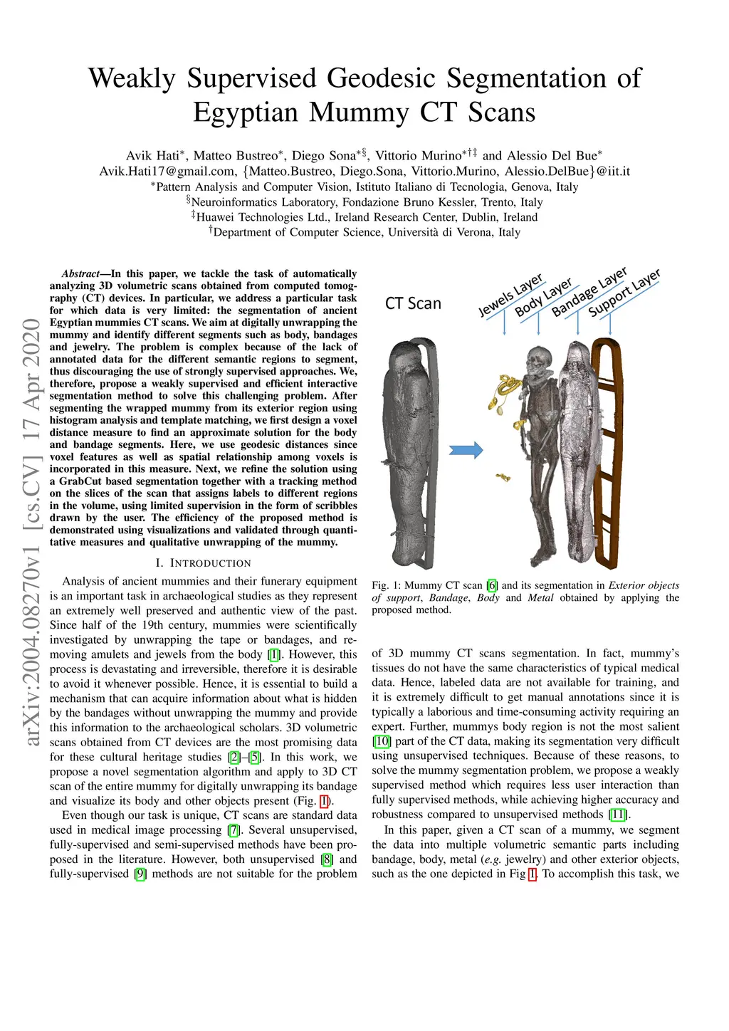 Weakly Supervised Geodesic Segmentation of Egyptian Mummy CT Scans