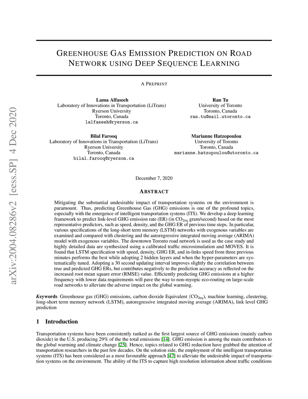 Greenhouse Gas Emission Prediction on Road Network using Deep Sequence