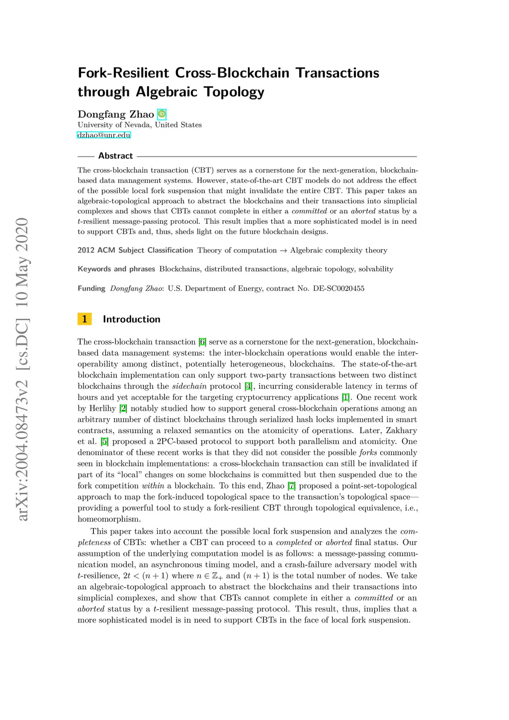 The cross-blockchain transaction (CBT) serves as a cornerstone for the next-generation, blockchain-based data management systems. However, state-of-the-art CBT models do not address the effect of the possible local fork suspension that might invalidate the entire CBT. This paper takes a combinatorial-topological approach to abstract the blockchains and their transactions into simplicial complexes and shows that CBTs cannot complete in either a \textit{committed} or an \textit{aborted} status by a -resilient message-passing protocol alone. This result implies that a more sophisticated model is in need to support CBTs and, thus, sheds light on the future blockchain designs.