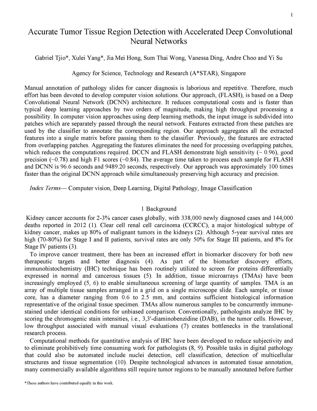 Accurate Tumor Tissue Region Detection with Accelerated Deep
