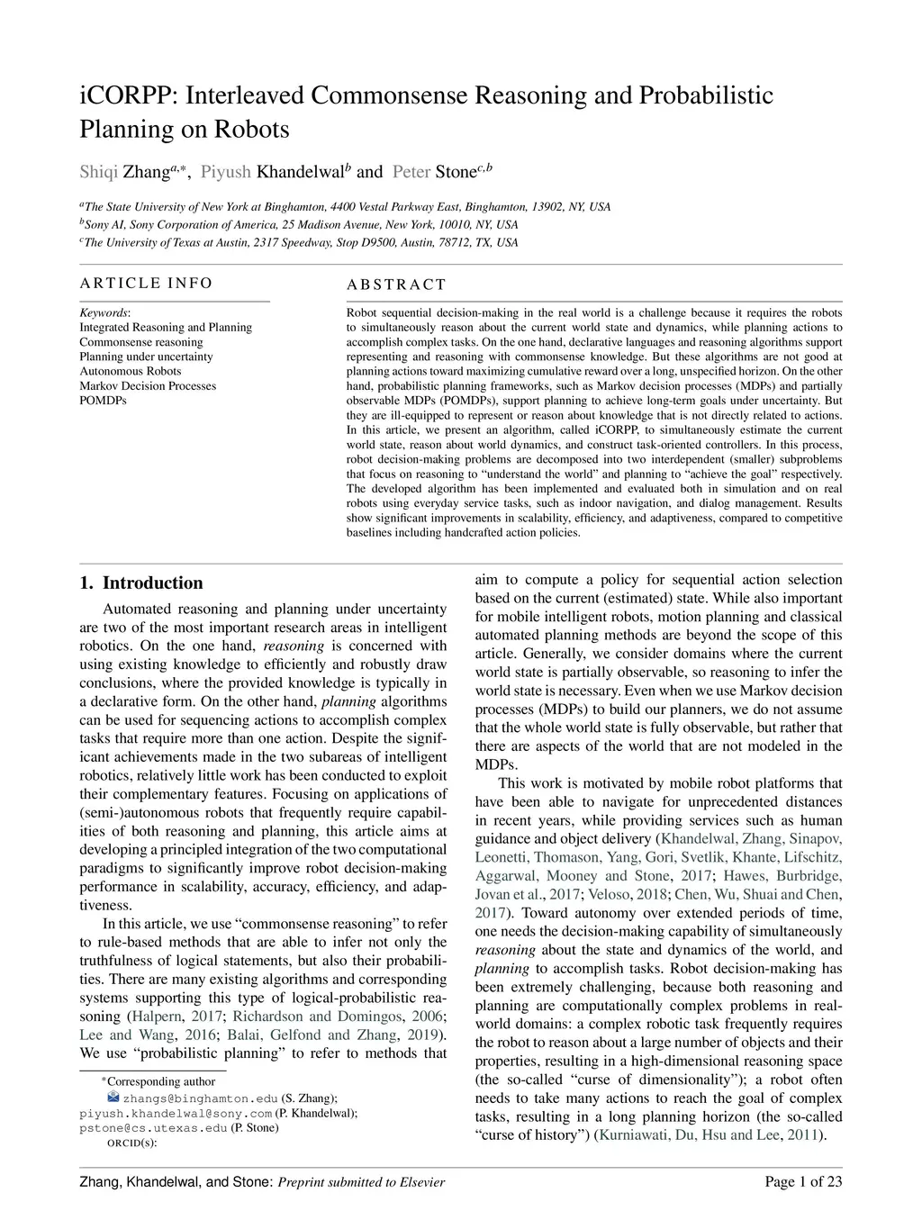 iCORPP: Interleaved Commonsense Reasoning and Probabilistic Planning on