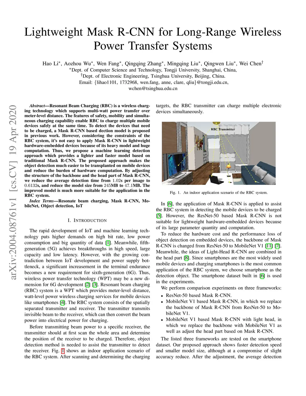 Lightweight Mask R-CNN for Long-Range Wireless Power Transfer Systems