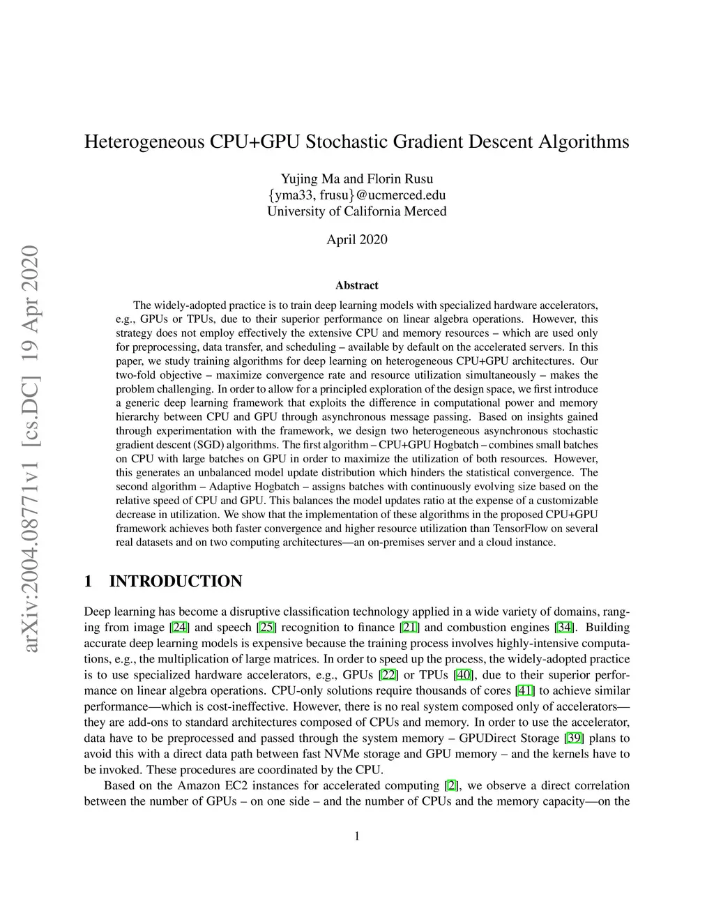 Heterogeneous CPU+GPU Stochastic Gradient Descent Algorithms