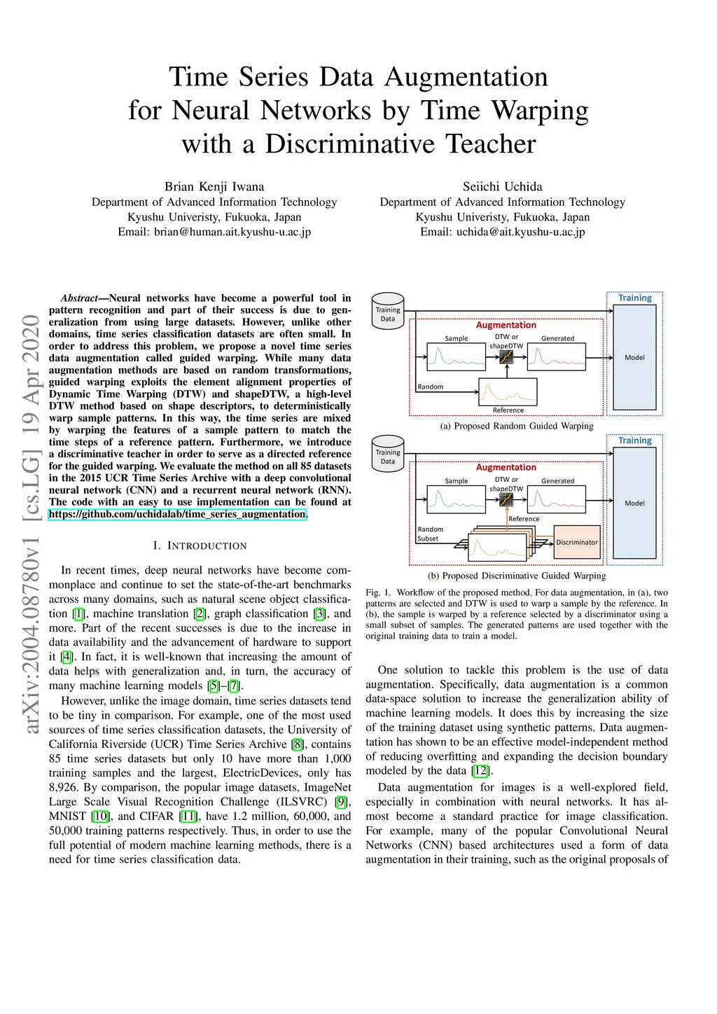 Time Series Data Augmentation for Neural Networks by Time Warping with a