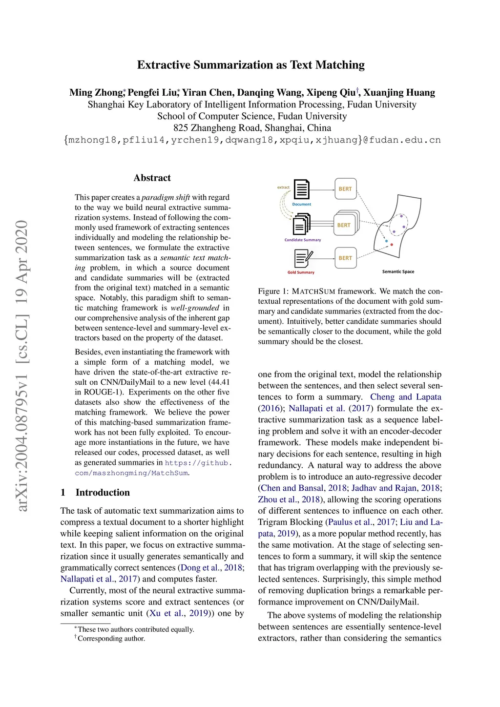 Extractive Summarization as Text Matching