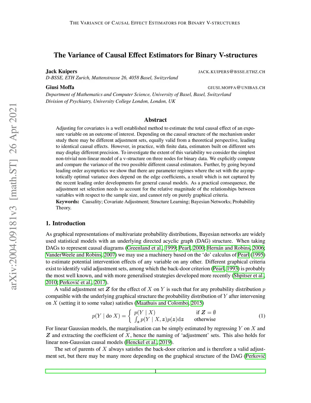 The Variance of Causal Effect Estimators for Binary V-structures