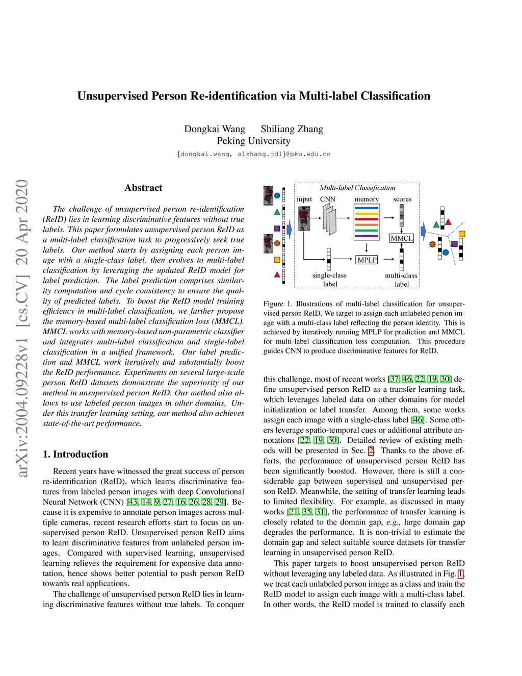 The challenge of unsupervised person re-identification (ReID) lies in learning discriminative features without true labels. This paper formulates unsupervised person ReID as a multi-label classification task to progressively seek true labels. Our method starts by assigning each person image with a single-class label, then evolves to multi-label classification by leveraging the updated ReID model for label prediction. The label prediction comprises similarity computation and cycle consistency to ensure the quality of predicted labels. To boost the ReID model training efficiency in multi-label classification, we further propose the memory-based multi-label classification loss (MMCL). MMCL works with memory-based non-parametric classifier and integrates multi-label classification and single-label classification in a unified framework. Our label prediction and MMCL work iteratively and substantially boost the ReID performance. Experiments on several large-scale person ReID datasets demonstrate the superiority of our method in unsupervised person ReID. Our method also allows to use labeled person images in other domains. Under this transfer learning setting, our method also achieves state-of-the-art performance.