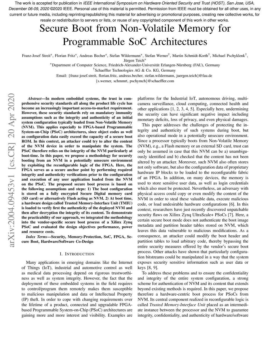 Secure Boot from Non-Volatile Memory for Programmable SoC Architectures