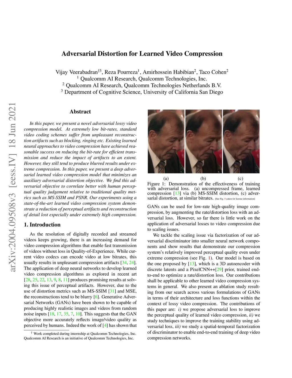 Adversarial Distortion for Learned Video Compression
