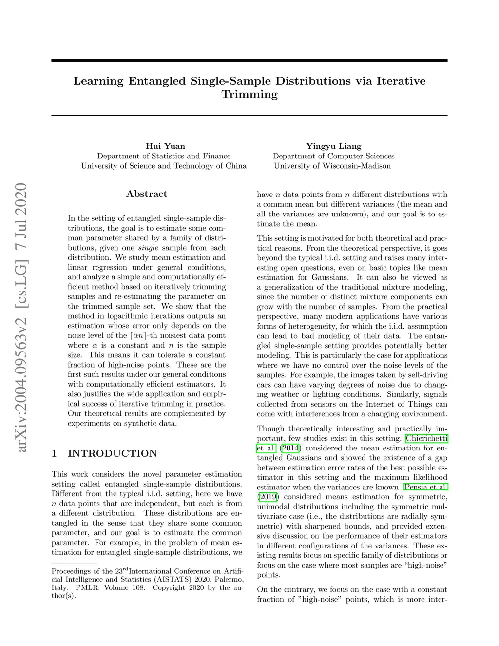 Learning Entangled Single-Sample Distributions via Iterative Trimming