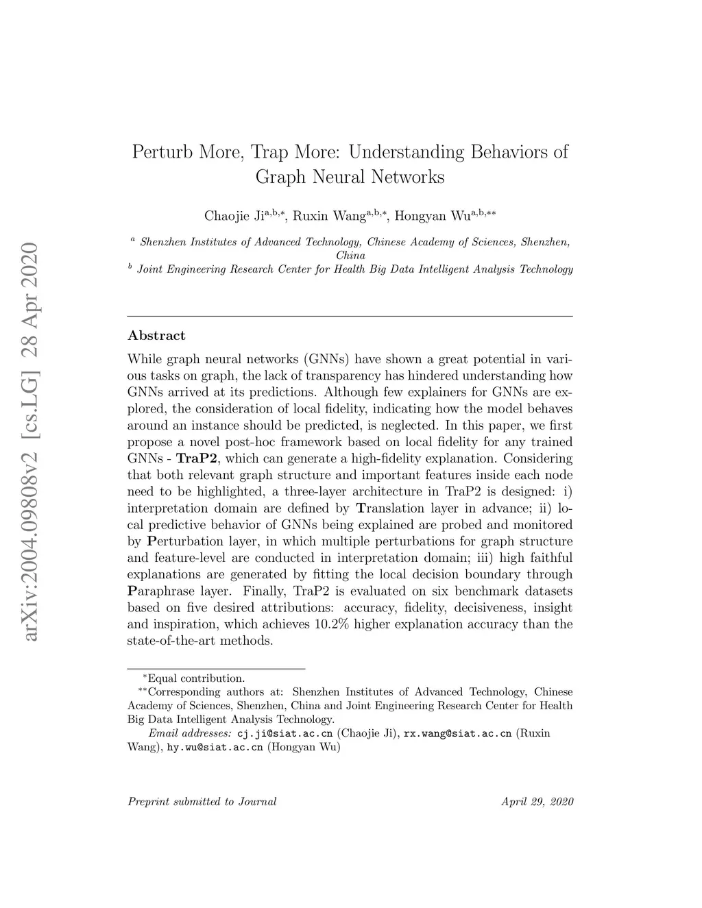 While graph neural networks (GNNs) have shown a great potential in various tasks on graph, the lack of transparency has hindered understanding how GNNs arrived at its predictions. Although few explainers for GNNs are explored, the consideration of local fidelity, indicating how the model behaves around an instance should be predicted, is neglected. In this paper, we first propose a novel post-hoc framework based on local fidelity for any trained GNNs - TraP2, which can generate a high-fidelity explanation. Considering that both relevant graph structure and important features inside each node need to be highlighted, a three-layer architecture in TraP2 is designed: i) interpretation domain are defined by Translation layer in advance; ii) local predictive behavior of GNNs being explained are probed and monitored by Perturbation layer, in which multiple perturbations for graph structure and feature-level are conducted in interpretation domain; iii) high faithful explanations are generated by fitting the local decision boundary through Paraphrase layer. Finally, TraP2 is evaluated on six benchmark datasets based on five desired attributions: accuracy, fidelity, decisiveness, insight and inspiration, which achieves higher explanation accuracy than the state-of-the-art methods.