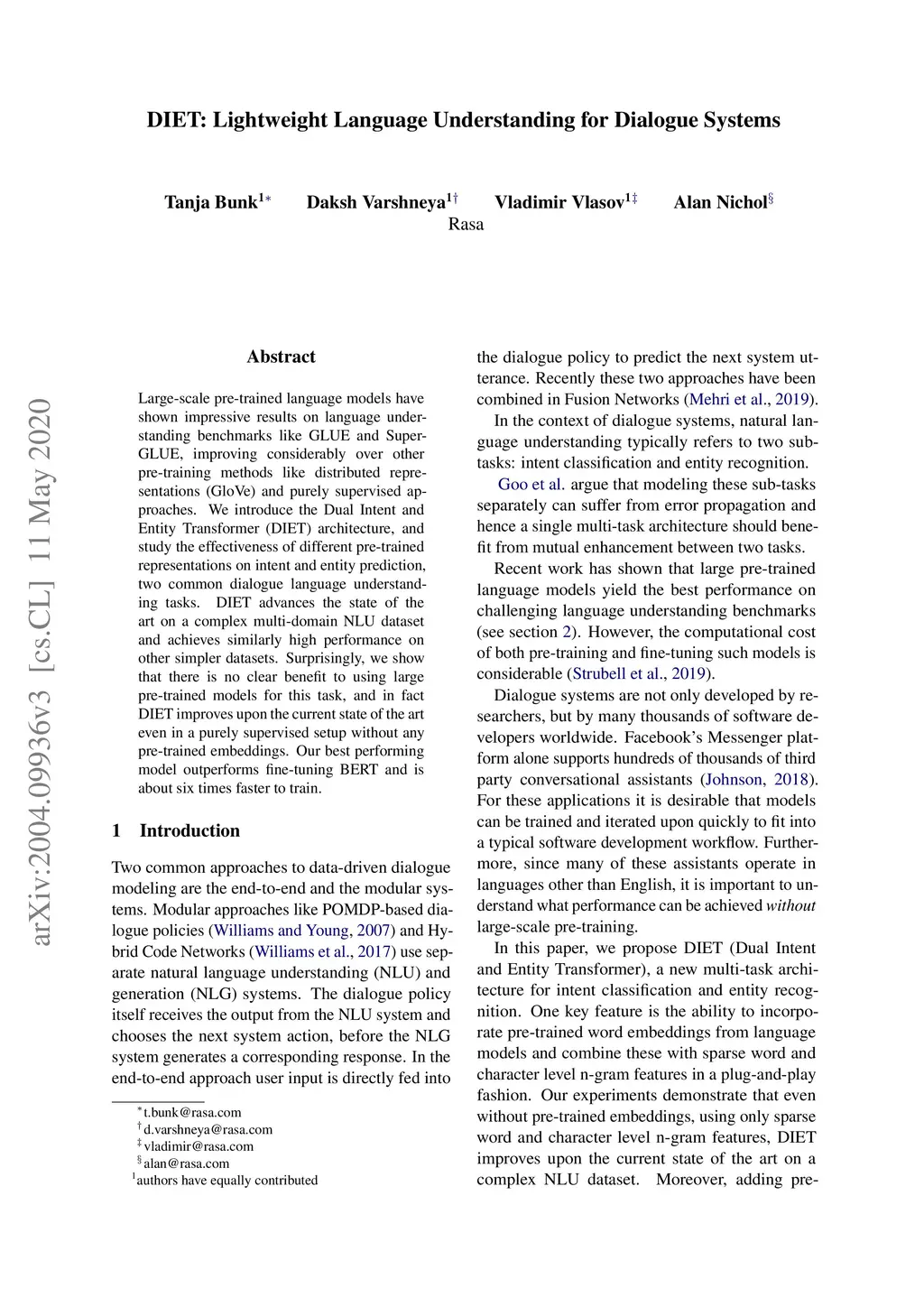 DIET: Lightweight Language Understanding for Dialogue Systems