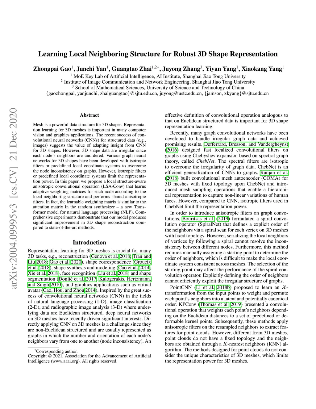 Learning Local Neighboring Structure for Robust 3D Shape Representation