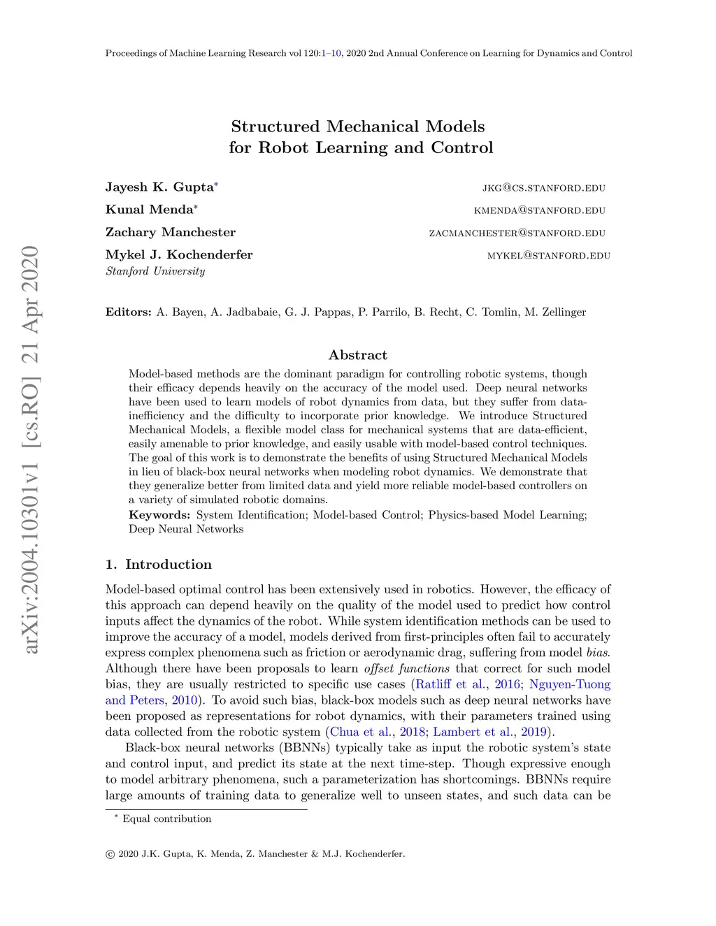 Structured Mechanical Models for Robot Learning and Control