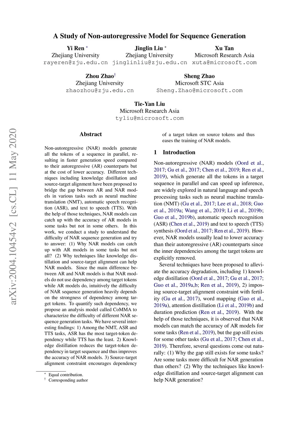 A Study of Non-autoregressive Model for Sequence Generation