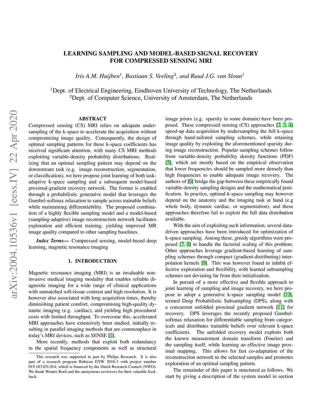 Compressed sensing (CS) MRI relies on adequate undersampling of the k-space to accelerate the acquisition without compromising image quality. Consequently, the design of optimal sampling patterns for these k-space coefficients has received significant attention, with many CS MRI methods exploiting variable-density probability distributions. Realizing that an optimal sampling pattern may depend on the downstream task (e.g. image reconstruction, segmentation, or classification), we here propose joint learning of both task-adaptive k-space sampling and a subsequent model-based proximal-gradient recovery network. The former is enabled through a probabilistic generative model that leverages the Gumbel-softmax relaxation to sample across trainable beliefs while maintaining differentiability. The proposed combination of a highly flexible sampling model and a model-based (sampling-adaptive) image reconstruction network facilitates exploration and efficient training, yielding improved MR image quality compared to other sampling baselines.