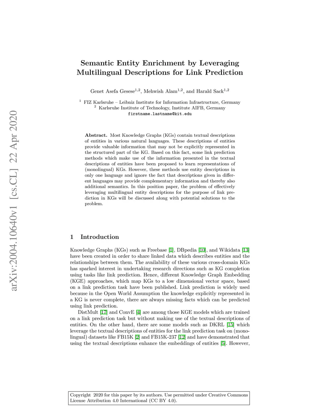 Most Knowledge Graphs (KGs) contain textual descriptions of entities in various natural languages. These descriptions of entities provide valuable information that may not be explicitly represented in the structured part of the KG. Based on this fact, some link prediction methods which make use of the information presented in the textual descriptions of entities have been proposed to learn representations of (monolingual) KGs. However, these methods use entity descriptions in only one language and ignore the fact that descriptions given in different languages may provide complementary information and thereby also additional semantics. In this position paper, the problem of effectively leveraging multilingual entity descriptions for the purpose of link prediction in KGs will be discussed along with potential solutions to the problem.