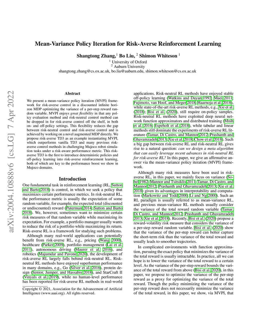 Mean-Variance Policy Iteration for Risk-Averse Reinforcement Learning