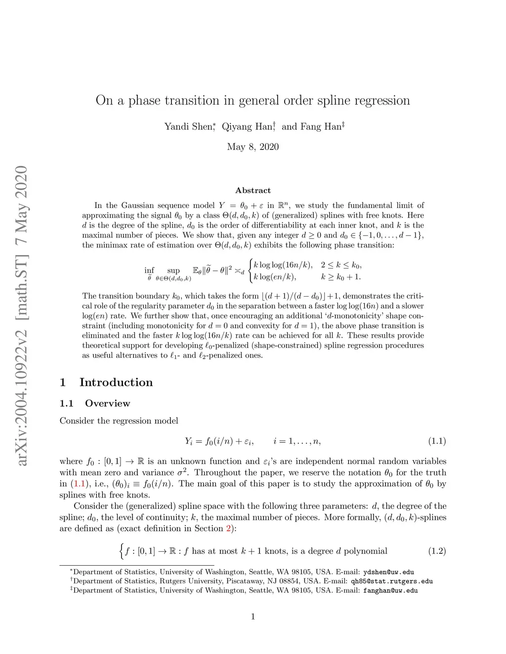 In the Gaussian sequence model in , we study the fundamental limit of approximating the signal by a class of (generalized) splines with free knots. Here is the degree of the spline, is the order of differentiability at each inner knot, and is the maximal number of pieces. We show that, given any integer and , the minimax rate of estimation over exhibits the following phase transition: \begin{equation*} \begin{aligned} \inf_{\widetilde{\theta}}\sup_{\theta\in\Theta(d,d_0, k)}\mathbb{E}_\theta\|\widetilde{\theta} - \theta\|^2 \asymp_d \begin{cases} k\log\log(16n/k), & 2\leq k\leq k_0,\\ k\log(en/k), & k \geq k_0+1. \end{cases} \end{aligned} \end{equation*} The transition boundary , which takes the form , demonstrates the critical role of the regularity parameter in the separation between a faster and a slower rate. We further show that, once encouraging an additional '-monotonicity' shape constraint (including monotonicity for and convexity for ), the above phase transition is eliminated and the faster rate can be achieved for all . These results provide theoretical support for developing -penalized (shape-constrained) spline regression procedures as useful alternatives to - and -penalized ones.
