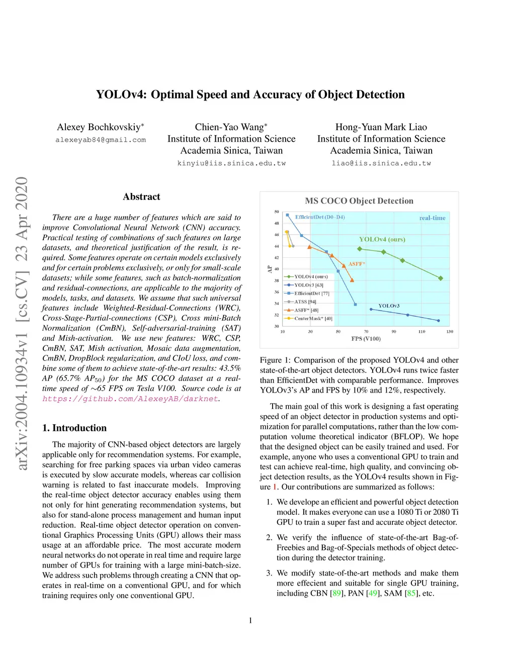 YOLOv4: Optimal Speed and Accuracy of Object Detection