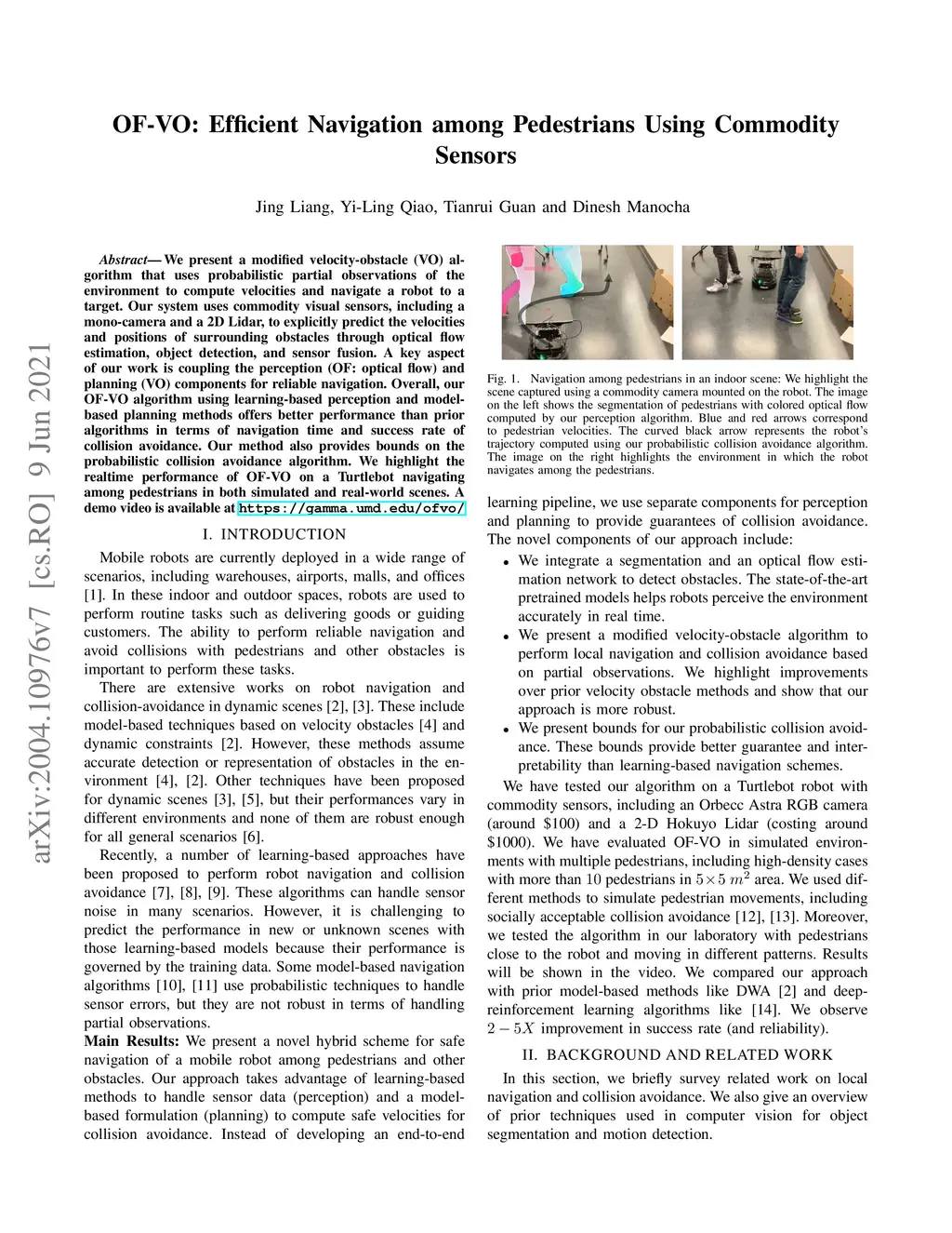 OF-VO: Efficient Navigation among Pedestrians Using Commodity Sensors