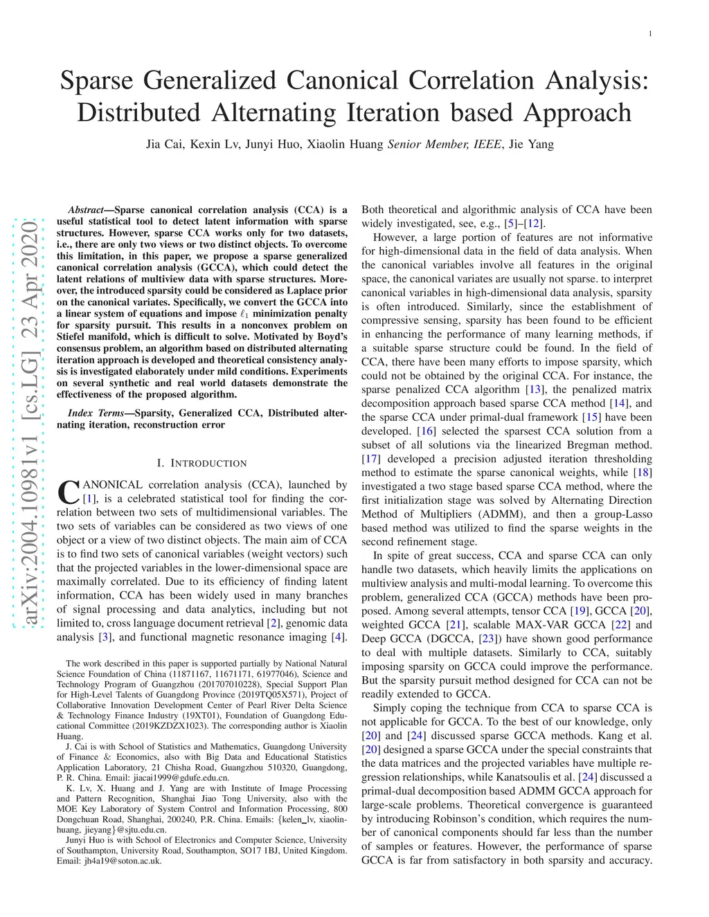 Sparse Generalized Canonical Correlation Analysis: Distributed